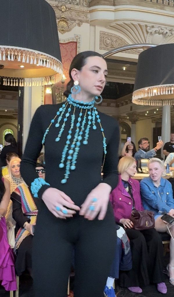En “Raíces”, la joya deja de ser un complemento secundario. Se impone como un objeto con presencia propia, capaz de ocupar espacio y redefinir la silueta del cuerpo. Los collares y composiciones están concebidos para envolverlo con fuerza escénica, pero también con una delicadeza artesanal que se percibe en cada acabado. No es solo diseño: es gesto, es actitud, es presencia.